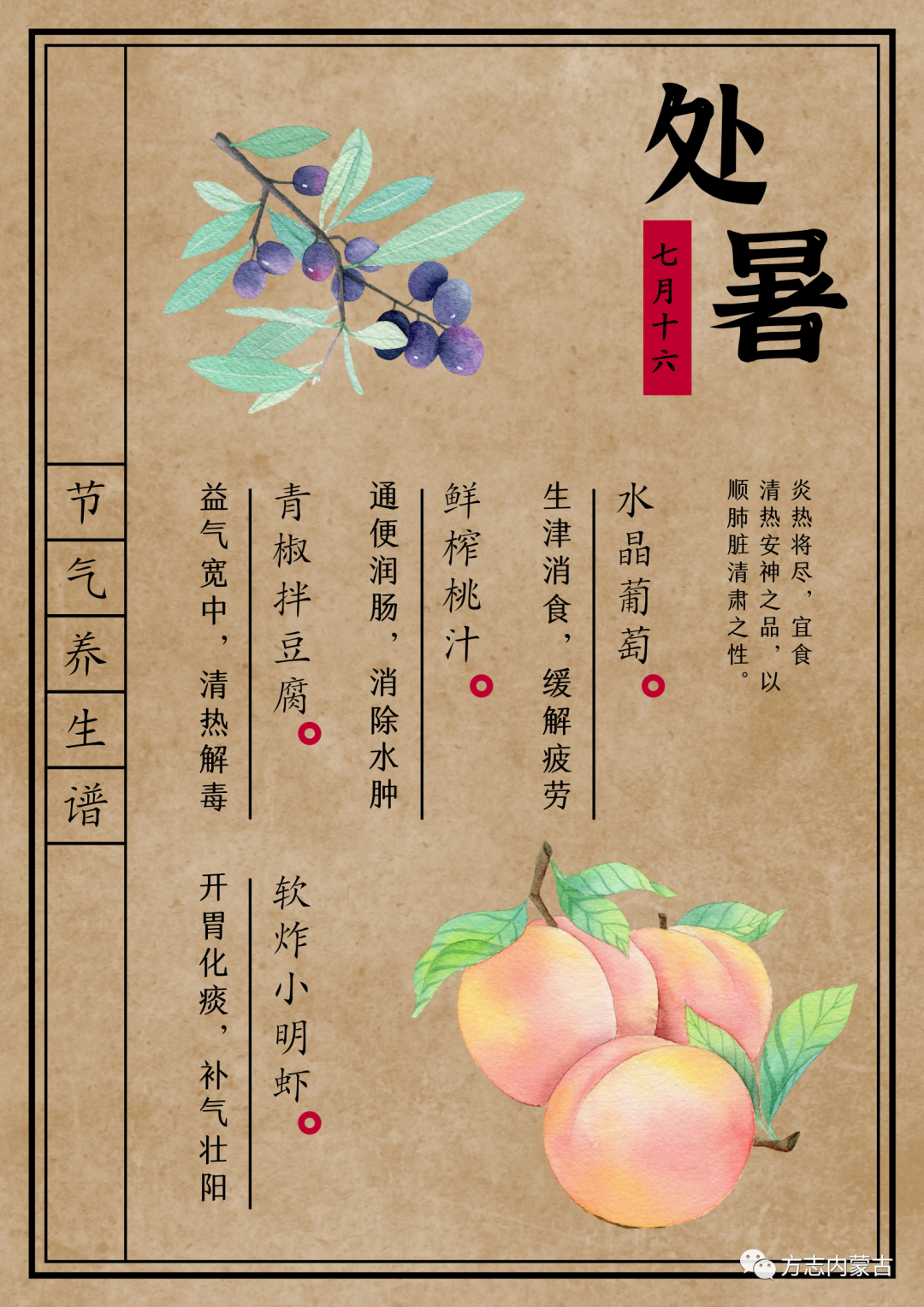 處暑,即為“出暑”。《月令七十二候集解》曰:“處,止也,暑氣至此而止矣。”