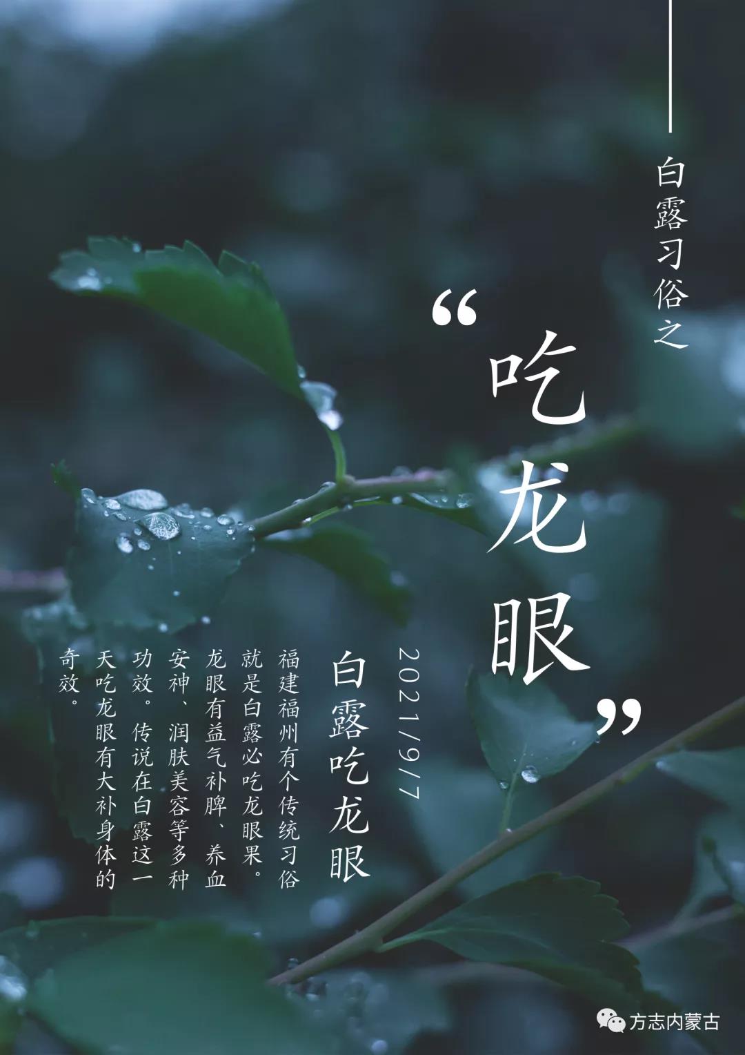 福建福州有個(gè)傳統(tǒng)習(xí)俗叫“白露必吃龍眼”。民間的意思是,在白露這一天吃龍眼有大補(bǔ)身體的奇效。因?yàn)辇堁郾旧砭陀幸鏆庋a(bǔ)脾、養(yǎng)血安神、潤(rùn)膚美容等多種功效,還可以治療貧血、失眠、神經(jīng)衰弱等多種疾病,而且白露之前的龍眼個(gè)大味甜口感好,所以白露吃龍眼是再好不過(guò)的了。