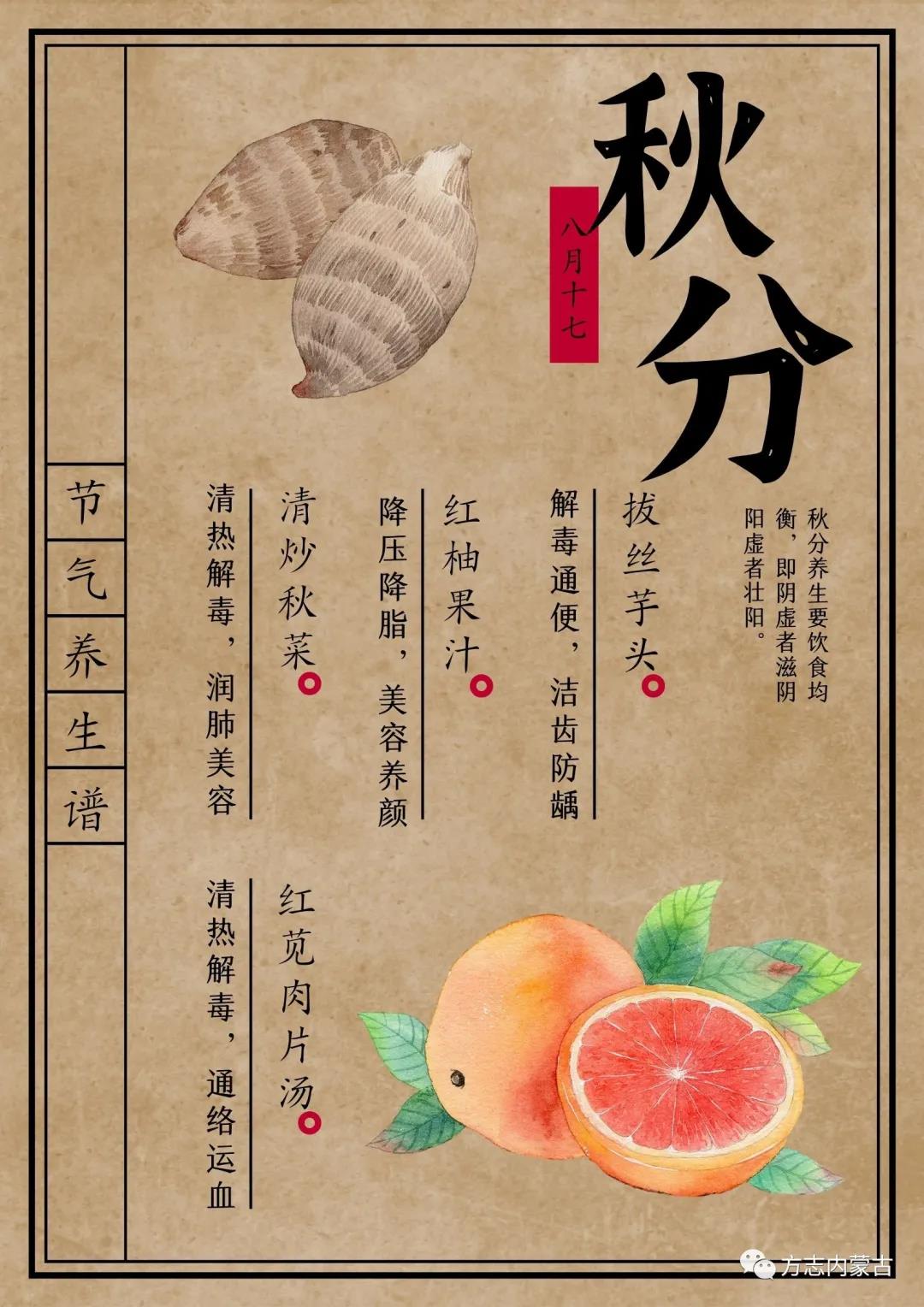 秋分也是美好宜人的時(shí)節(jié),風(fēng)和日麗,秋高氣爽,丹桂飄香。春種秋收,唐朝詩(shī)人李紳的《憫農(nóng)》說(shuō)“春種一粒粟,秋收萬(wàn)顆子”,春天開(kāi)花,秋天結(jié)果。秋分時(shí)節(jié)碩果累累,螃蟹魚(yú)蝦肥美,金菊正黃。秋分也是種麥正當(dāng)時(shí),農(nóng)業(yè)生產(chǎn)上重要的節(jié)氣。南方此時(shí)才剛變冷,則可以繼續(xù)農(nóng)作,延續(xù)到秋天結(jié)束霜降為止。