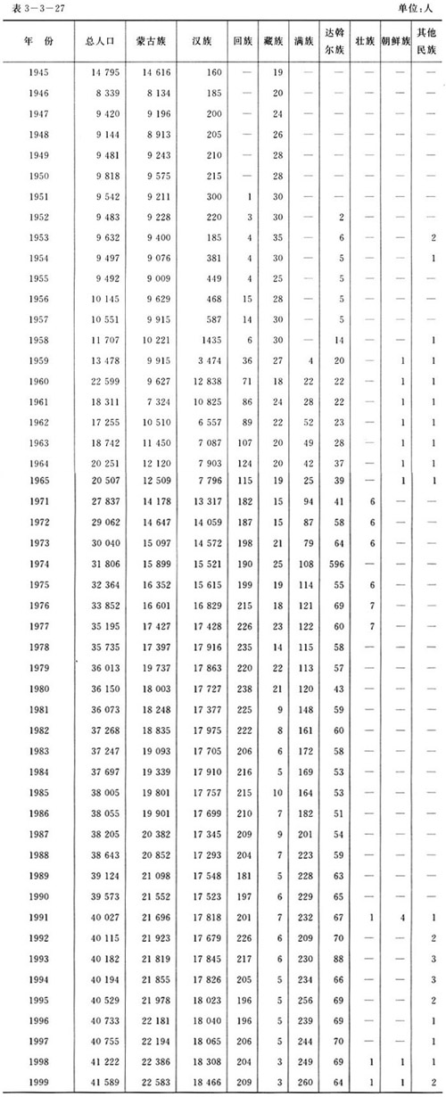 19451999年阿巴嘎旗分民族人口統(tǒng)計表