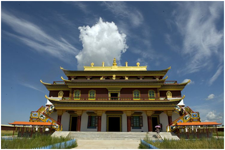 甘珠爾廟 在呼倫貝爾市新巴爾虎左旗境內(nèi)。清朝初年,巴爾虎部由喀爾喀遷至呼倫貝爾巴爾虎舊旗(包括今新巴爾虎左右兩旗)。清乾隆六年(1741年),由清政府賜給巴爾虎部一部《甘珠爾經(jīng)》。當(dāng)時(shí)建一小廟供奉(即甘珠爾廟前身)。清乾隆四十九年(1784年),新巴爾虎左、右兩旗聯(lián)合,在左翼旗博彥圖布白都修建一座寺廟,專供《甘珠爾經(jīng)》,稱為甘珠爾廟。由清政府賜名“壽寧寺”,發(fā)給滿漢蒙藏四體文匾額,喇嘛度牒40枚。
