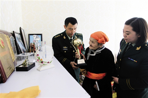 從都貴瑪搬到旗里住,四子王旗邊防大隊(duì)的官兵們就經(jīng)常來(lái)看望她,前幾年還聘請(qǐng)她當(dāng)了大隊(duì)的編外教導(dǎo)員。在四子王旗,都貴瑪有很多“陌生”的子女,人們尊敬她愛(ài)戴她,被她無(wú)私的母親般的情懷所感動(dòng),在杜爾伯特草原上,從不缺少這樣溫情的故事。