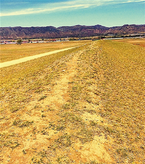 外城西墻遺址已被踩出道路。