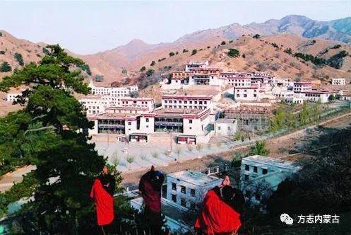 五當召始建于清康熙年間,以西藏扎什倫布寺為藍本,經乾隆、嘉慶、光緒年間多次維修、擴建,遂成今日規(guī)模。寺廟被群山環(huán)抱,山上蒼松翠柳,郁郁蔥蔥,寺前小溪清澈,流水涓涓。整個寺院依山勢建造,規(guī)模宏大,殿堂倉舍2538間,占地約20萬平方米,鼎盛時喇嘛1200余人。所有建筑均采用藏式結構:平頂、直墻、小窗、白色,整個寺院與山巔松柏輝映,顯得十分精美壯觀。