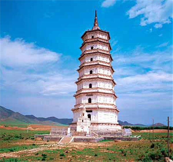 五十家子白塔亦稱“萬壽白塔”。位于赤峰市敖漢旗瑪尼罕鄉(xiāng)五十家子村西臺地上的遼代降圣州故址內(nèi)。佛塔始建于遼代早期,元、明時期曾多次修繕。現(xiàn)為內(nèi)蒙古自治區(qū)重點文物保護單位。