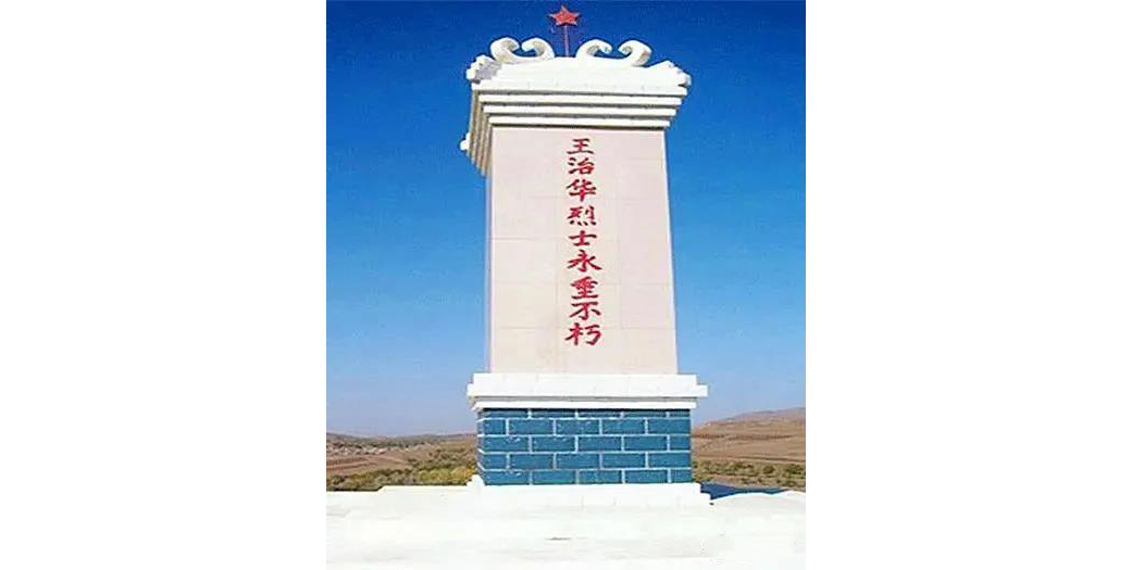 王治華烈士紀(jì)念碑位于錫林郭勒盟正鑲白旗星耀鎮(zhèn)志華山(原名聚寶山)村西。1948年10月,商化康聯(lián)合縣在察哈爾盟租銀地(今星耀鎮(zhèn))張蓋灣村(今章蓋灣)召開縣區(qū)干部會(huì)議。國(guó)民黨11兵團(tuán)收編的慣匪于繡城、白金輝得知情報(bào)后,帶領(lǐng)400余人深夜長(zhǎng)途奔襲張蓋灣村,試圖一舉摧垮和消滅商化康聯(lián)合縣武裝力量。10月25日凌晨,敵人悄悄摸進(jìn)張蓋灣村,當(dāng)哨兵與敵人遭遇時(shí),馬上鳴槍報(bào)警。危急時(shí)刻,身為聯(lián)合縣公安局副局長(zhǎng)的王治華為保護(hù)縣委領(lǐng)導(dǎo)的安全及會(huì)議重要文件,果斷命令警衛(wèi)員通知并護(hù)送縣委領(lǐng)導(dǎo)轉(zhuǎn)移。為吸引敵人火力,王治華躍馬向東南方的聚寶山(今治華山)沖去,經(jīng)過(guò)激烈戰(zhàn)斗,商化康聯(lián)合縣委領(lǐng)導(dǎo)成功轉(zhuǎn)移。而王治華卻被敵人圍在山上,當(dāng)敵人沖上山頭時(shí),堅(jiān)貞不屈的王治華將最后一顆子彈留給自己,壯烈犧牲時(shí)年僅30歲,為察哈爾草原人民的解放事業(yè)獻(xiàn)出年輕的生命。