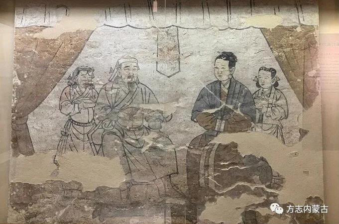 “墓主人對坐圖”壁畫,元代。赤峰市博物館藏。赤峰市元寶山區(qū)砂子山元墓出土。繪于正壁,橫幅,寬234厘米、高94厘米。