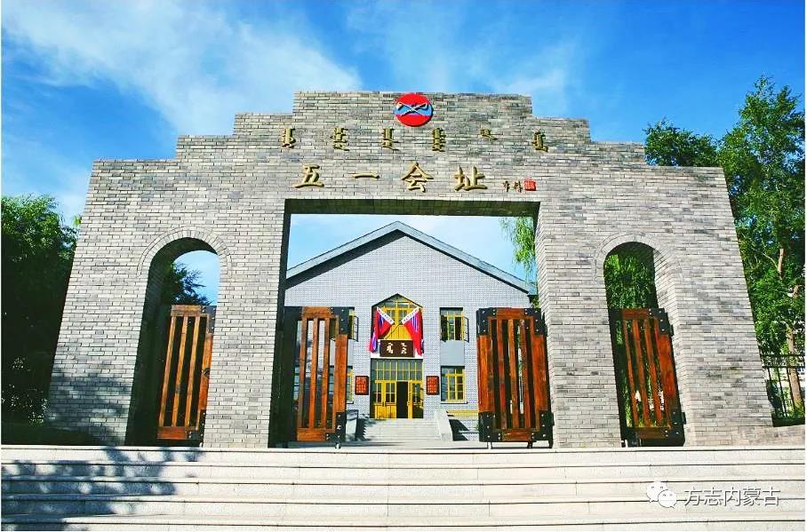 1987年,值內(nèi)蒙古自治區(qū)成立40周年之際,重修“五·一”會址。維修后的“五·一”會址,坐東朝西,平面為長方形,東西長64米,南北寬18米。正面為起脊式青磚建筑。中軸線上依次為門廳、陳列大廳、主席臺、庫房,大廳西側(cè)各有3個取暖壁爐。會址總建筑面積708.37平方米,占地面積2700平方米。