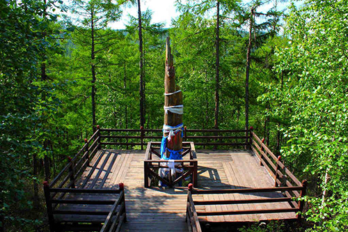 1207年,成吉思汗回室韋祭祖,路上生發(fā)狩獵之念,逐鹿至龍巖山頂。只見(jiàn)林海茫茫,云凝峰巒,霞光四射,一派吉祥。大汗此時(shí)豪氣萬(wàn)千,生出統(tǒng)一蒙古的志愿,一聲巨吼:莫爾道嘎(蒙語(yǔ)譯為駿馬出征),此后這片林園便命名為莫爾道嘎。