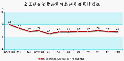 1—10月,全區(qū)社會消費品零售總額完成5926.2億元,同比增長6.8%,與全國平均水平的差距縮小至2.4個百分點,今年以來增速始終保持在6.5%~7.0%區(qū)間穩(wěn)定增長。分城鄉(xiāng)市場看,鄉(xiāng)村消費快于城鎮(zhèn),城鎮(zhèn)零售額同比增長6.6%;鄉(xiāng)村零售額增長9.2%,快于城鎮(zhèn)2.6個百分點。分類值看,石油類商品成為拉動限額以上零售額的重要引擎,全區(qū)石油類商品同比增長12.2%,是拉動限上零售額的主要動力,比前三季度加快0.9個百分點,中西藥類商品和糧油食品類商品分別同比增長16.2%和7.6%。