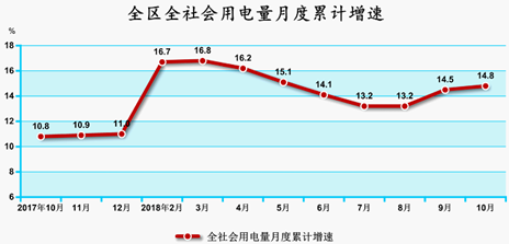 1—10月,全區(qū)全社會用電量2743.3億千瓦時,同比增長14.8%,增速比上年同期加快4.1個百分點。其中,工業(yè)用電量2377.0億千瓦時,增長14.1%,增速比上年同期加快3.7個百分點。貨運量完成20.7億噸,同比增長8.8%。其中,公路貨運量13.4億噸,增長8.6%;鐵路貨運量7.3億噸,增長9.3%。