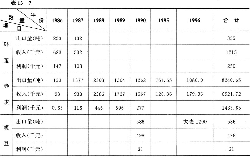 1986—1996年鮮蛋、蕎麥、豌豆出口情況表