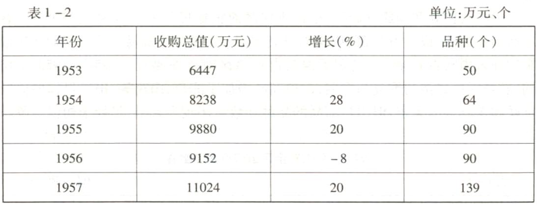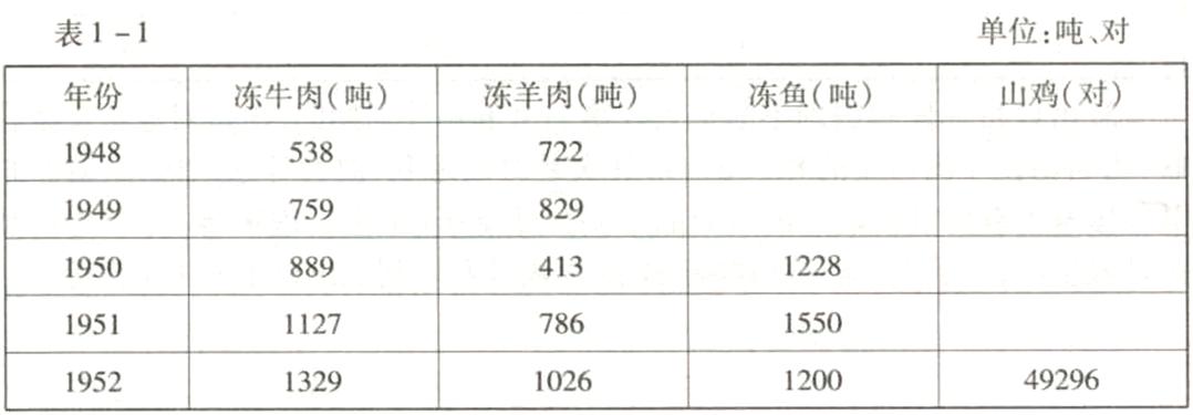 2. 出口商品種類多、數(shù)量增大。第一個五年計劃期間,隨著國民經(jīng)濟發(fā)展和社會主義建設(shè)的需要,出口商品由最初的1~2種發(fā)展到1953年的50個品種,到1957年發(fā)展到139個品種。主要以農(nóng)畜產(chǎn)品為主,有大豆、玉米、小米、蕎麥、蓖麻子、凍牛肉、凍羊肉、野禽、干蛋(即凍雞蛋)、凍魚、豬鬃、腸衣、綿羊毛、山羊毛、羊絨、駝毛、砩石等,收購總值已達到11 024萬元,5年翻了近一番。