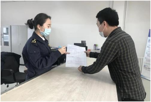 海關(guān)關(guān)員指導(dǎo)企業(yè)辦理通關(guān)手續(xù)