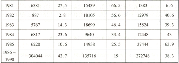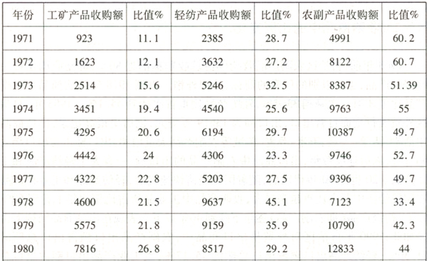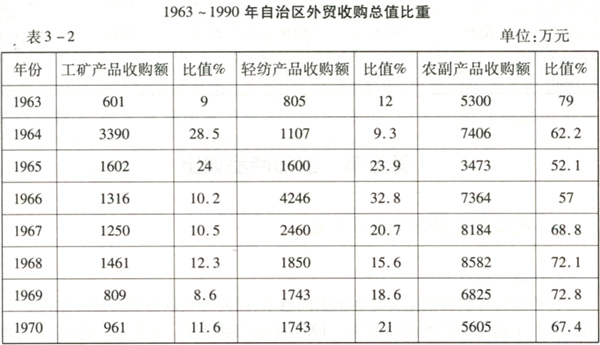 1963—1990年自治區(qū)外貿(mào)收購總值比重統(tǒng)計表