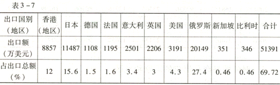 二、對(duì)外貿(mào)易商品出口的國(guó)家和地區(qū)