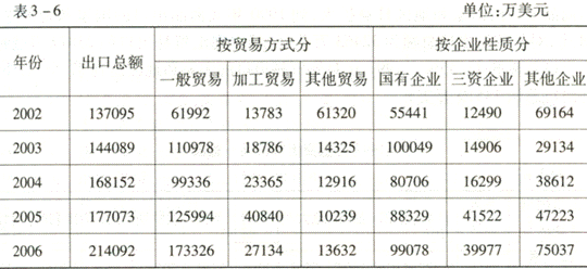 2002—2006年自治區(qū)對(duì)外貿(mào)易出口表