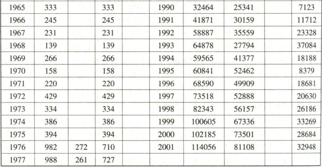 1953—2001年自治區(qū)對(duì)外貿(mào)易出口表