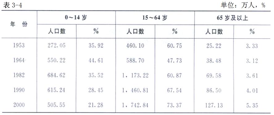 2000年,全國第五次普查年齡構(gòu)成的數(shù)據(jù)表明,0歲~14歲的少年兒童人口為5 055 593人,占總?cè)丝?SPAN lang=EN-US>21.28%,15歲~64歲的人口為17 428 493人,占總?cè)丝?SPAN lang=EN-US>73.37%,65歲及以上的老年人口為152543人,占總?cè)丝?SPAN lang=EN-US>5.35%。
