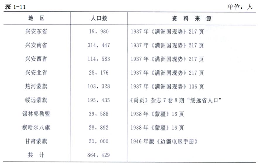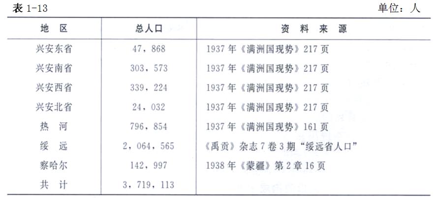 1937年蒙古族人口統(tǒng)計表
