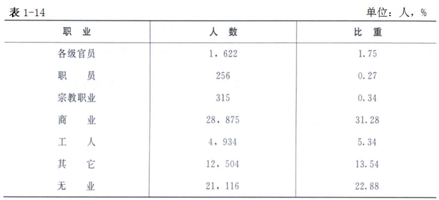 1940年呼和浩特市區(qū)職業(yè)構(gòu)成