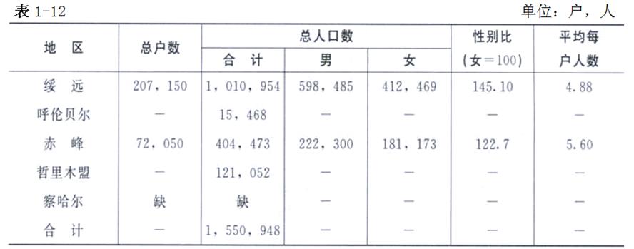 民國元年(1912年)時,內(nèi)蒙古漢族人口超過150萬,缺察哈爾等地數(shù)字,實際人口總數(shù)還要多。在此以后,內(nèi)蒙古漢族人口增長速度進(jìn)一步加快,至民國26年(1937年)已超過300萬人。
