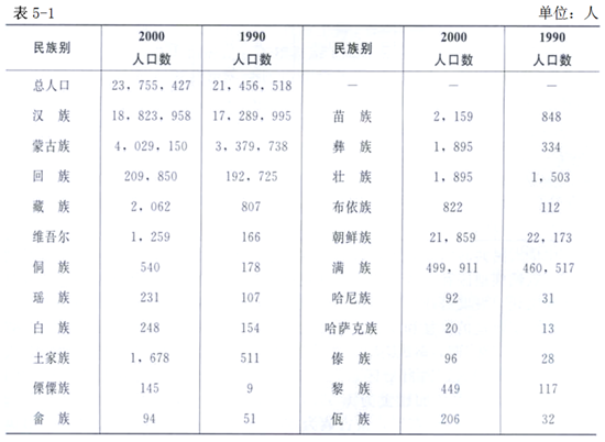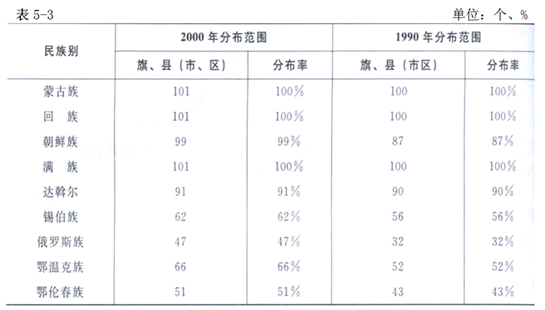 19902000年內(nèi)蒙古自治區(qū)主要少數(shù)民族人口分布狀況