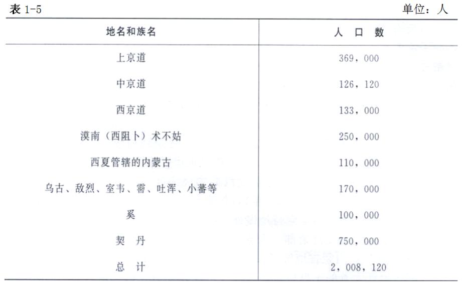 遼統(tǒng)和十八年(1000年)內(nèi)蒙古人口