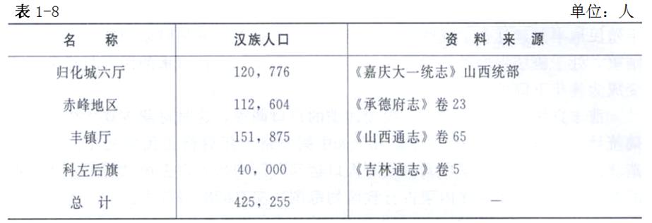 19世紀(jì)初歸化城六廳等四處漢族人口