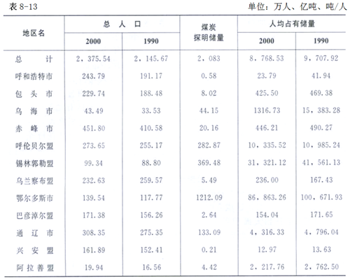 2000年內蒙古自治區(qū)探明的煤炭儲量在2100多億噸以上,僅次于山西省,居全國第二位。遠景儲量大約有12 250億噸以上,僅次于新疆維吾爾自治區(qū),同樣名列第二位。
