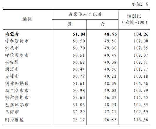 根據(jù)第七次全國(guó)人口普查結(jié)果,現(xiàn)將2020年11月1日零時(shí)自治區(qū)12個(gè)盟市常住人口[2]性別構(gòu)成情況公布如下: