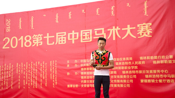 2018年8月5日,錫林郭勒大草原迎來了第七屆中國馬術(shù)大賽。中國馬術(shù)大賽是錫林浩特市承辦的國內(nèi)頂級馬術(shù)競技賽事。自2013年起,錫林浩特市已連續(xù)成功舉辦了五屆中國馬術(shù)大賽。比賽共設6大賽事:國際馬聯(lián)一星級耐力賽、速度賽、全國場地障礙青少年錦標賽、繞桶團體賽和個人賽,北京馬協(xié)速度賽馬公開賽錫林浩特站,以及具有民族特色的蒙古馬繞桶、馬上拾哈達大賽,來自全國各地80余家馬術(shù)俱樂部約400多組人馬組合參加此項賽事,可謂是異常激烈、精彩紛呈。馬上拾哈達項目共有全國各地34名騎手參賽,內(nèi)蒙古表演馬術(shù)隊派出4名隊員首次參賽,最終恩和寶力高不畏強手、奮勇拼搏,以用時7秒29拾起全部十條哈達的成績獲得第一名。(作者:劉紅琴)