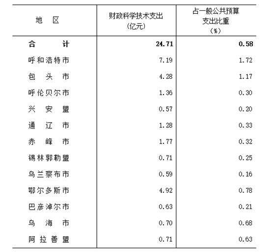 全區(qū)12個盟市中,呼和浩特市、包頭市、鄂爾多斯市、烏海市、阿拉善盟等5個盟市,財政科學(xué)技術(shù)支出占地方一般公共預(yù)算支出比重高于全區(qū)平均水平(詳見附表3)。