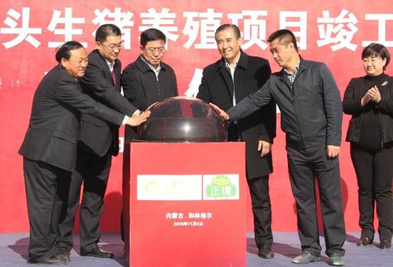 2016年11月4日上午,呼和浩特市和林格爾縣15萬頭生豬養(yǎng)殖基地落成,這標(biāo)志著當(dāng)?shù)匾M(jìn)的正大集團(tuán)100萬頭生豬全產(chǎn)業(yè)鏈綜合示范項目正式投產(chǎn)。