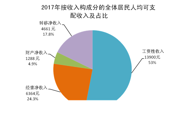 2017年,全體居民均可支配收入26 212元,比上年增長(zhǎng)8.6%,扣除價(jià)格因素后實(shí)際增長(zhǎng)6.8%。全體居民均生活消費(fèi)支出18 946元,增長(zhǎng)4.8%。