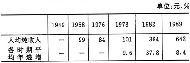 據(jù)抽樣調(diào)查,1989年,平均每戶農(nóng)民擁有生產(chǎn)性固定資產(chǎn)總額3678.75元,比1982年增長1.9倍。平均每百戶擁有大中型拖拉機(jī)4臺、小型拖拉機(jī)和手扶拖拉機(jī)31臺、膠輪大車28輛,役畜、產(chǎn)品畜253頭,機(jī)動(dòng)脫粒機(jī)4臺、膠輪手推車63輛、抽水機(jī)3臺、水泵4臺,同過去相比均有較大幅度增加。另據(jù)調(diào)查,農(nóng)民家庭耐用物品、生活用房擁有量增加,檔次提高。
