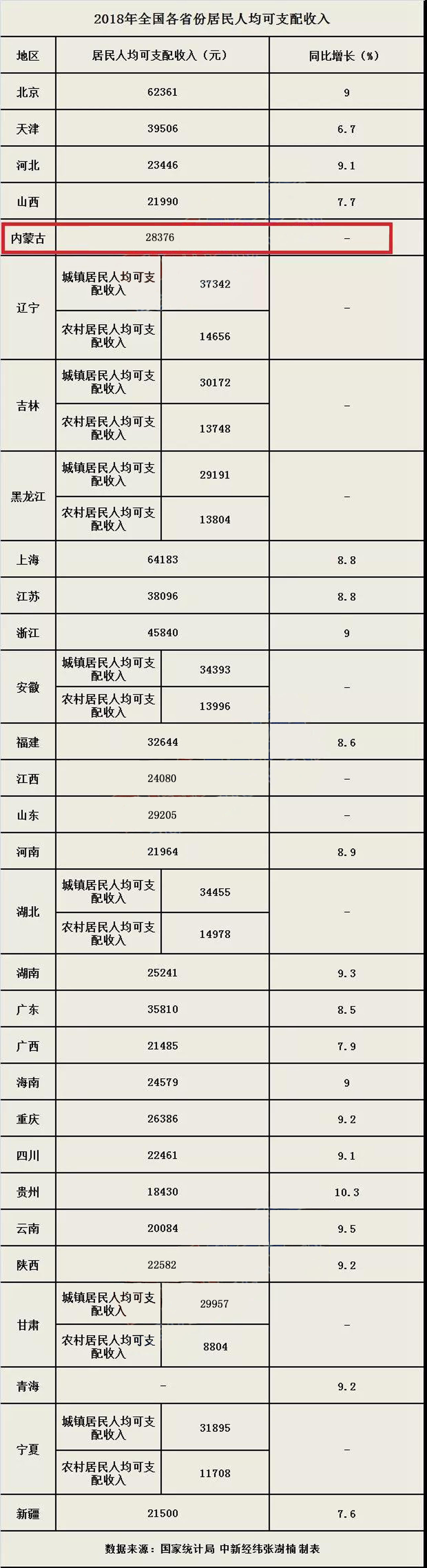 2018年,北京、天津、內(nèi)蒙古、上海、江蘇、浙江、福建、山東、廣東居民均可支配收入超過全國平均水平。