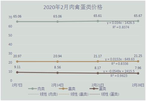 (二)2月份肉禽類銷售額環(huán)比下降89.2%和50.4%,但價格呈現(xiàn)上揚(yáng)趨勢,環(huán)比增長分別為1.8%和4.76%。對照疫情防控措施,由于各地嚴(yán)格控制物流,增設(shè)體溫檢測和消毒環(huán)節(jié),導(dǎo)致人工成本提高,物流效率降低,隨著交易成本的增加,銷售額和價格呈現(xiàn)負(fù)相關(guān)現(xiàn)象。因運(yùn)輸受阻,2月份雞蛋庫存加大,雞蛋價格有所下降。隨著復(fù)產(chǎn)復(fù)工,商貿(mào)流通和餐飲業(yè)的逐漸恢復(fù),預(yù)計(jì)后期肉類、禽類以及蛋類運(yùn)行趨于穩(wěn)定。