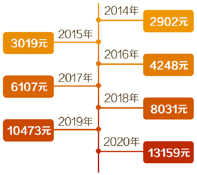 全區(qū)建檔立卡貧困人口人均收入由2014年的2902元增加到2020年的13159元,年均增長28.7%。