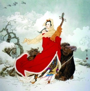 史載,王嬙非一般女子,她主動(dòng)上書(shū)掖庭令,自請(qǐng)遣往匈奴。所以,她也更引發(fā)了文人墨客的悲憫之情。而對(duì)這種發(fā)乎情的自然行為,大可不必?fù)榉ビ屑樱J(rèn)為是貶低了昭君的品質(zhì),危害了民族團(tuán)結(jié)大義。那種昭君出塞只能是歡天喜地,不能是哭哭啼啼的悖逆人性的思維才是不健康的。傳說(shuō)昭君辭宮北行,也曾登高回望,并取琵琶奏出塞之曲,聲調(diào)悲涼,聞?wù)邿o(wú)不垂淚。