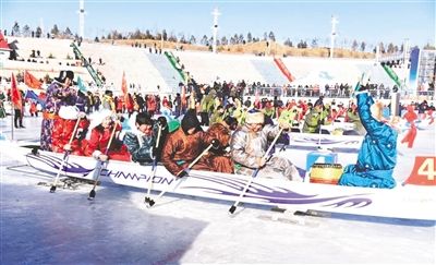 冰上龍舟賽吸引了全國(guó)各地的冰雪愛好者踴躍參賽。《錫林郭勒日?qǐng)?bào)》記者 毛鳳鳴 攝
