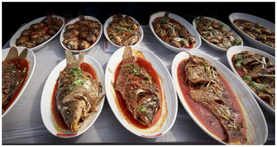 “托克托縣燉魚特色是魚好、辣椒面兒更好,燉魚一定要放本地產的茴香面兒、干姜面兒,再放點香菜,燉出來的味道特香。”老托克托縣人在吃魚方面不但嘴刁,還都知道燉魚的訣竅。托克托縣有句俗語叫:新糜米燜飯開河魚。魚湯泡上現推的糜米燜飯,再加上開河魚,鮮香可口。