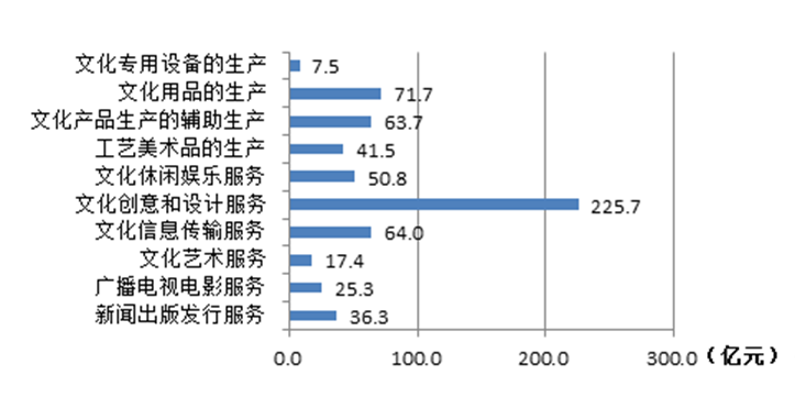 新興文化產(chǎn)業(yè)呈現(xiàn)出較強的發(fā)展勢頭。目前全區(qū)文化產(chǎn)業(yè)單位已覆蓋了文化休閑娛樂、文化藝術(shù)、文化信息傳輸、文化創(chuàng)意和設(shè)計服務(wù)等10個行業(yè)大類,50個行業(yè)中類,文化產(chǎn)業(yè)門類逐步趨向齊全。“十一五”時期以互聯(lián)網(wǎng)技術(shù)發(fā)展為依托的文化信息傳輸服務(wù)業(yè)、文化創(chuàng)意和設(shè)計服務(wù)的新興文化產(chǎn)業(yè)迅速崛起發(fā)展較快,2017年全區(qū)新興文化產(chǎn)業(yè)法人單位實現(xiàn)營業(yè)收入達(dá)289.71億元,占全區(qū)文化產(chǎn)業(yè)法人單位的營業(yè)收入48.0%。其中文化創(chuàng)意和設(shè)計服務(wù)行業(yè)營業(yè)收入最多,達(dá)225.74億元,占新興文化產(chǎn)業(yè)法人單位營業(yè)收入77.9%,十大類行業(yè)中占比最高(見下圖):