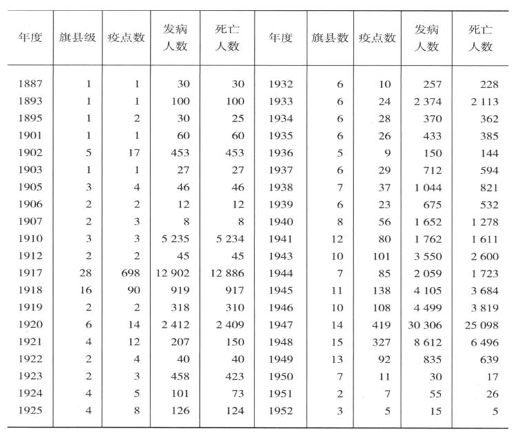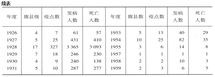 1887—1959年內(nèi)蒙古人間鼠疫發(fā)生不完全表