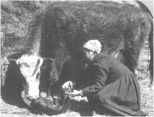 圖為牧民喜接新出生的牛犢