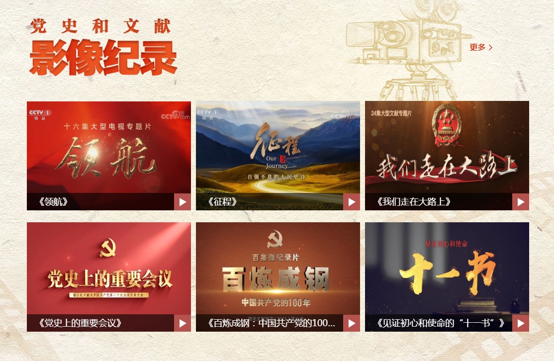 “黨史和文獻(xiàn)影像紀(jì)錄”欄目發(fā)布《領(lǐng)航》《征程》《黨史上的重要會議》等多部我院參與制作的影像紀(jì)錄片。