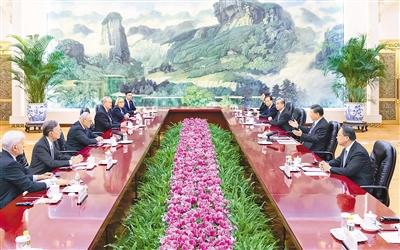10月9日下午,國家主席習近平在北京人民大會堂會見美國國會參議院多數(shù)黨領袖舒默率領的美國國會參議院兩黨代表團。