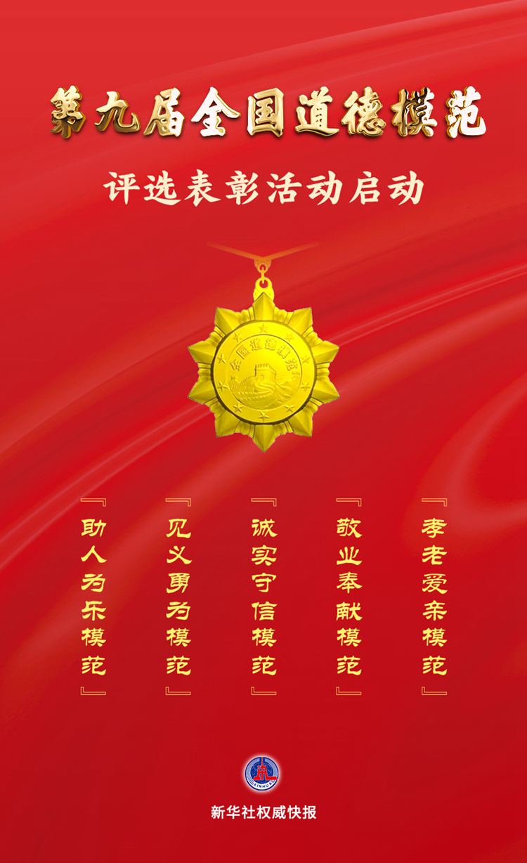 據悉,第九屆全國道德模范分為“助人為樂模范”“見義勇為模范”“誠實守信模范”“敬業(yè)奉獻模范”“孝老愛親模范”5個類別,通過群眾推薦、遴選審核、公示宣傳、投票評選等步驟評選產生,將激勵億萬群眾把道德模范榜樣力量轉化為生動實踐,為全面建設社會主義現代化國家、全面推進中華民族偉大復興提供堅強思想保證、強大精神力量和有力道德支撐。
