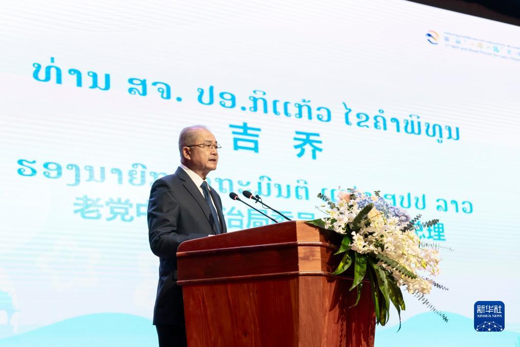 12月7日,在老撾首都萬象,老撾副總理吉喬在第二屆“一帶一路”老—中合作論壇上致辭。新華社記者 朱煒 攝