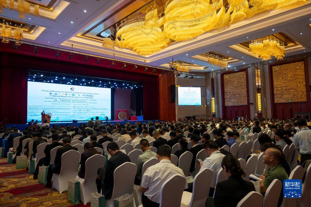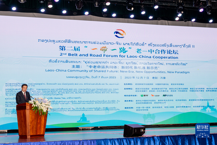 這是12月7日在老撾首都萬象拍攝的第二屆“一帶一路”老—中合作論壇現(xiàn)場。新華社記者 朱煒 攝